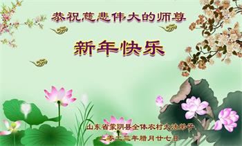感谢师父的慈悲救度!弟子唯有努力做好三件事,不辜负师父的期望。 山东临沂兰山区大法弟子恭祝师尊过年好!