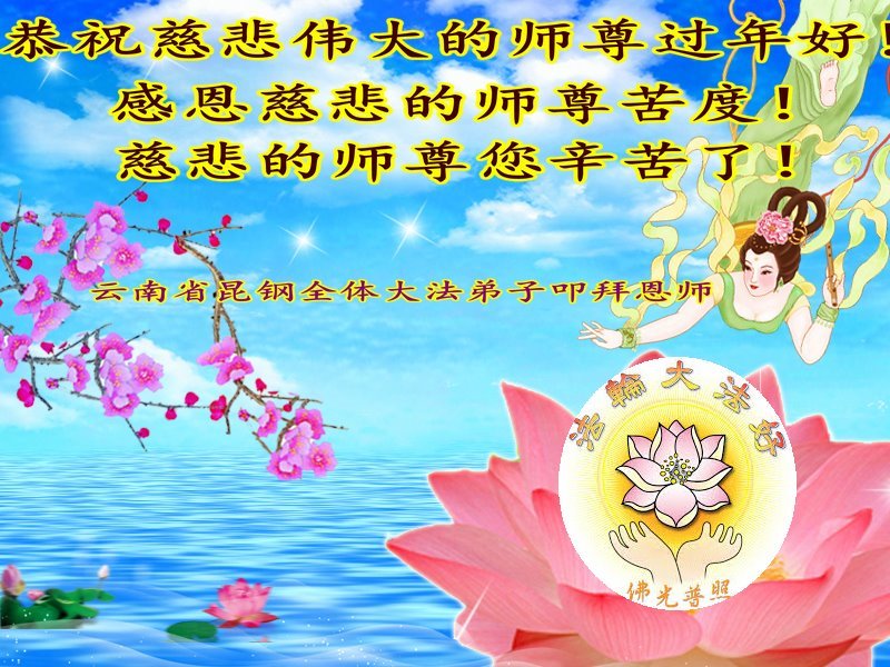 慈悲的师尊您辛苦了! 云南省昆钢全体大法弟子恭祝慈悲的师尊过年好!