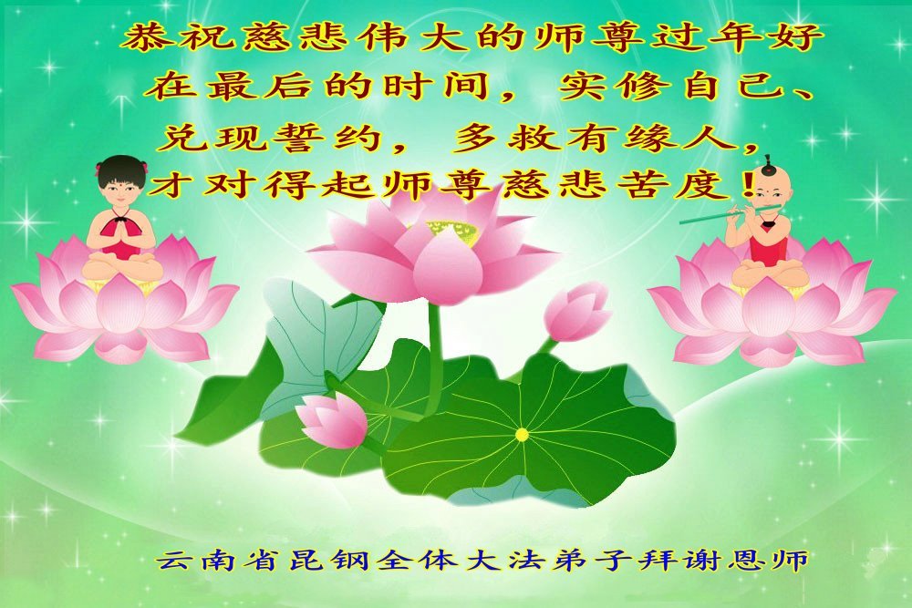 感恩慈悲的师尊苦度!法徒使命忘不了!兑现誓约多救人! 云南省昆钢全体大法弟子恭祝慈悲的师尊过年好!