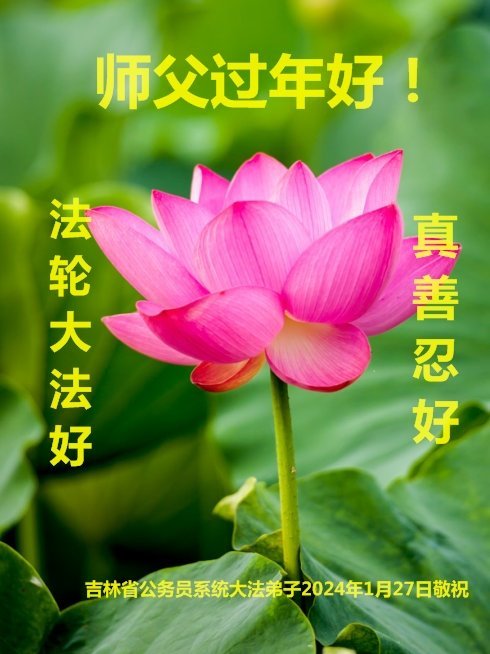 我们只是苍宇中的一粒子,能成为正法时期的大法弟子,是何其荣幸,弟子们会加倍的珍惜、感恩!信师信法,听师父的话,做好三件事。值此新年佳节之际,弟子们遥拜师尊,恭祝师尊新年快乐! 吉林省伊通县一学法小组大法弟子敬上 2024年1月8日 吉林省延边州公务员系统大法弟子恭祝师父过年好!