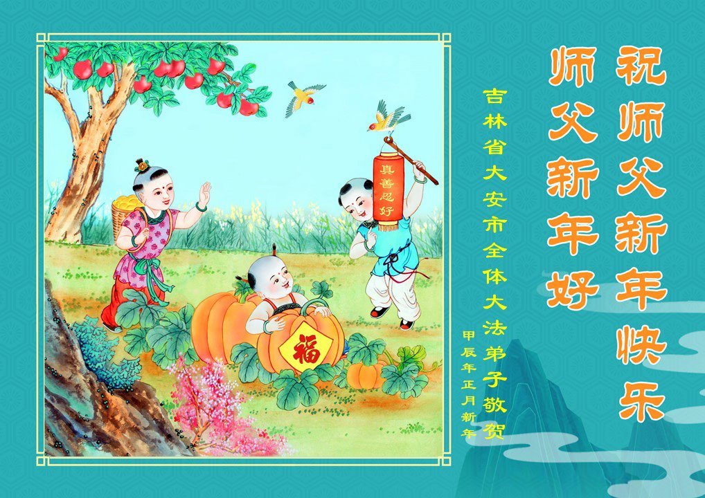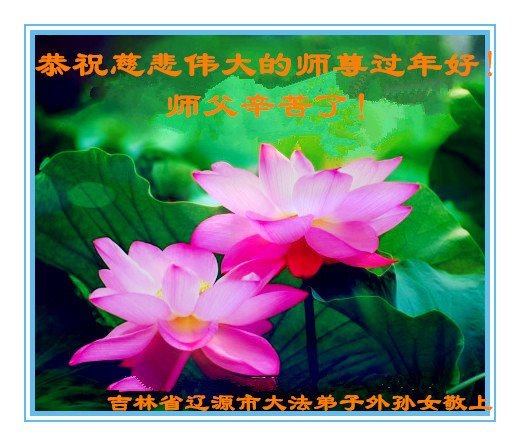 吉林省辽源市大法弟子恭祝慈悲伟大的师尊过年好!师父辛苦了! 吉林省辽源市大法弟子及外孙女敬上 吉林省延边朝鲜族学法小组大法弟子恭祝师尊新年快乐!