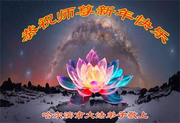 感恩师尊慈悲救度! 我们会继续做好三件事,跟师父回家。 黑龙江省哈尔滨周边大法弟子及全家人恭祝师尊新年快乐!