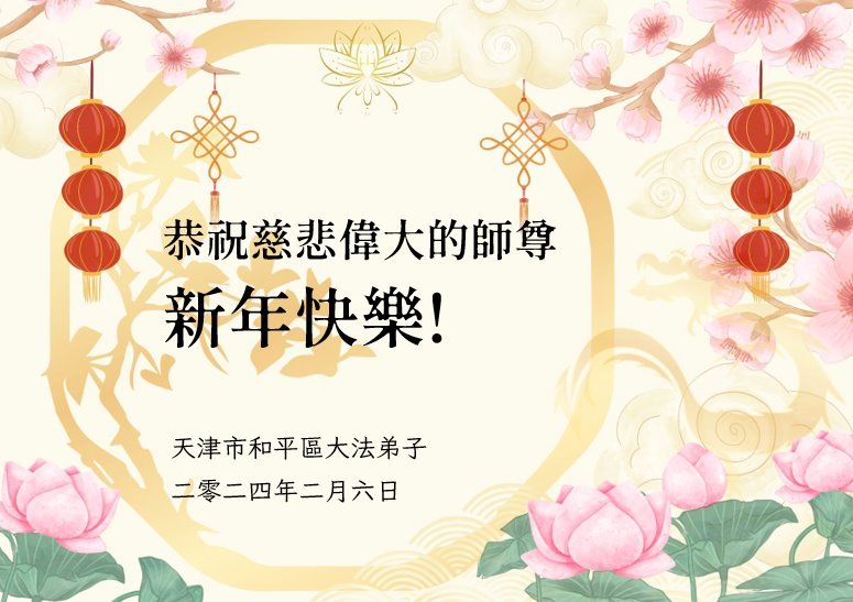 【明慧网二零二四年二月十三日】 天津市滨海新区塘沽区全体大法弟子恭祝慈悲伟大的师尊新年好!