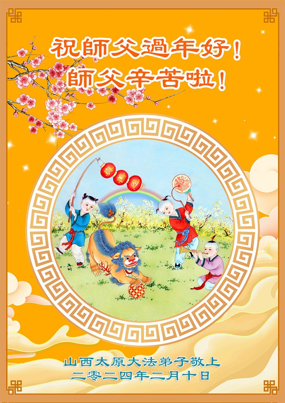 【明慧网二零二四年二月十三日】 山西省太原市一学法小组大法弟子恭祝慈悲伟大的师尊过年好!
