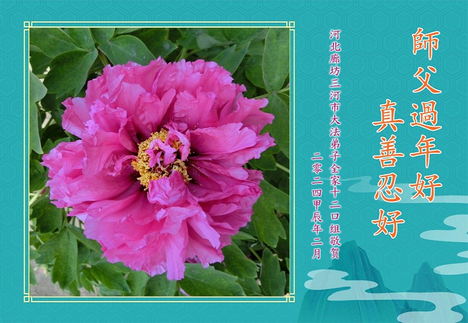 河北廊坊三河市大法弟子全家十二口向恭祝师父过年好!