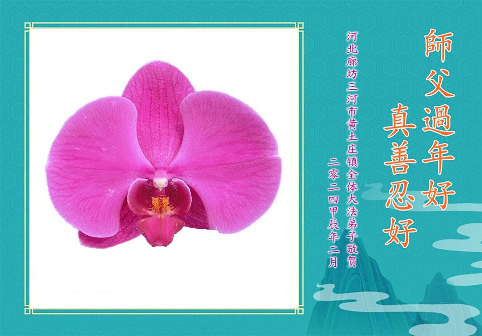 向慈悲伟大的师父问好! 法轮大法好!真善忍好! 河北廊坊三河市黄土庄镇全体大法弟子恭祝师父过年好!