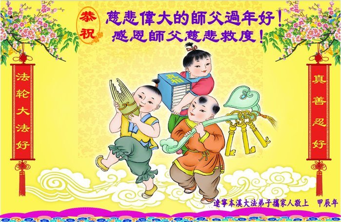在龙年到来之际,恭祝师尊新年快乐!感谢师尊的慈悲苦度!很久以前我们来到这个无比肮脏的世间,是为了一个心愿、一直在内心深藏,有朝一日喜遇大法,生命有了希望。我要做一个真修弟子,回到美好故里,真正的家园。谢谢师尊慈悲救度! 弟子跪拜师尊! 辽宁省本溪市一老年大法弟子恭祝师尊新年新年快乐!