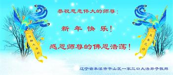 伟大的师尊新年好!感恩伟大的师尊慈悲救度。经过二十多年的正法修炼历程,千辛万苦,您给我们带上回归之路。我一定做好三件事,兑现誓约,完成使命,跟师父回家。跪拜师尊! 辽宁本溪市平山区一大法弟子恭祝师尊新年快乐!