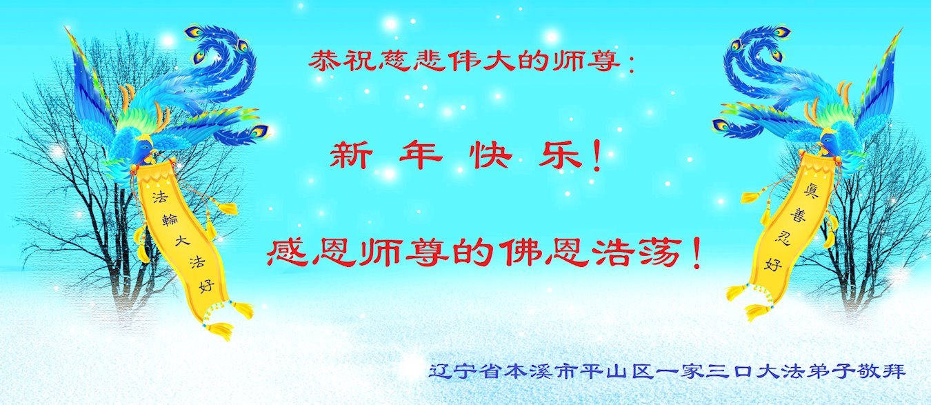 辽宁本溪市平山区一家三口大法弟子恭祝师尊新年快乐!