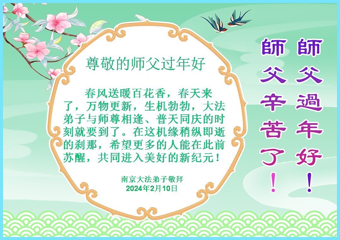 恭祝师父新年好! 江苏大法弟子 二零二四年二月九日 除夕 江苏南京一大法弟子向师尊拜年