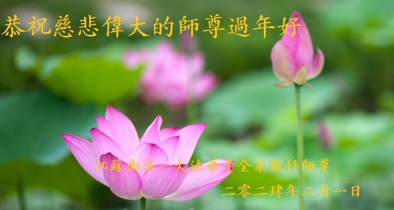 感恩师父慈悲救度! 弟子一定修好自己,跟师父回家。 江苏常州市一老年大法弟子敬上 江苏南京一大法弟子恭祝师尊过年好!