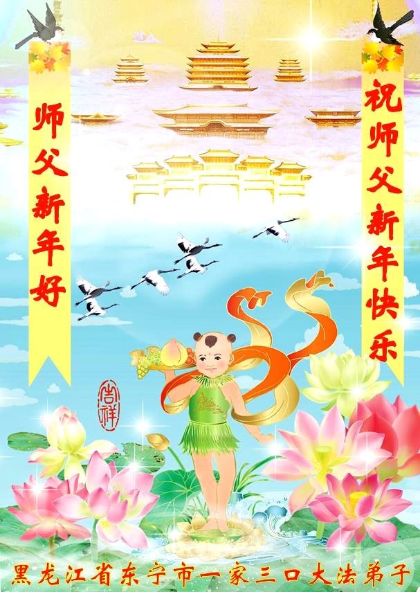 弟子们一定不负师恩,精進实修,做好三件事。 黑龙江医疗卫生系统大法弟子敬上 黑龙江省牡丹江市大法弟子真相小组恭祝慈悲伟大的师尊新年好!