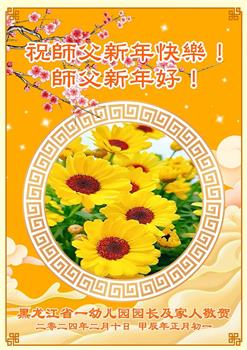 中国新年之际,我及明真相的家人恭祝大法师父过年好!师父辛苦了!盼望师父早日回到中国! 黑龙江省一幼儿园园长及家人敬上 二零二四年二月十日 甲辰年正月初一 黑龙江省一大法弟子家属恭祝师父新年好!