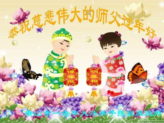 转眼又一年,师父您辛苦了!回首过去的一年,无论在矛盾中、在严重的病业中、甚至面对邪恶的绑架,深深的感受到师父您的保护和加持,因为有您,我们才平稳的走了过来,佛恩浩荡,师恩难报啊。我们一定听师父的话,做好三件事,盼望和师父早日相聚,盼望看到神韵早日回大陆。 唐山市五人学法小组大法弟子敬上 河北省唐山市一老年大法弟子及家属恭祝慈悲伟大的师父过年好!