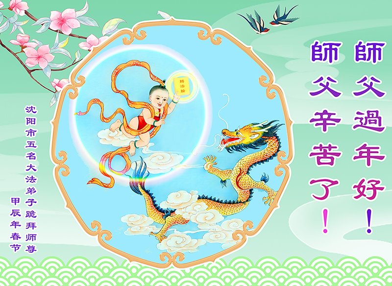 全家感谢大法师父的慈悲苦度及保护,谢谢师父! 沈阳市苏家屯一大法弟子携全家敬上 辽宁省沈阳市二人讲真相小组大法弟子恭祝师父过年好!