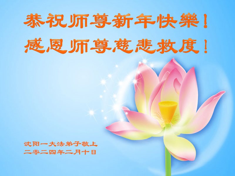 感谢师尊慈悲保护,感恩之心无以言表。 沈阳市大法弟子一家人敬上 辽宁省沈阳市一大法弟子及明白真相全家人恭祝师尊新年快乐!