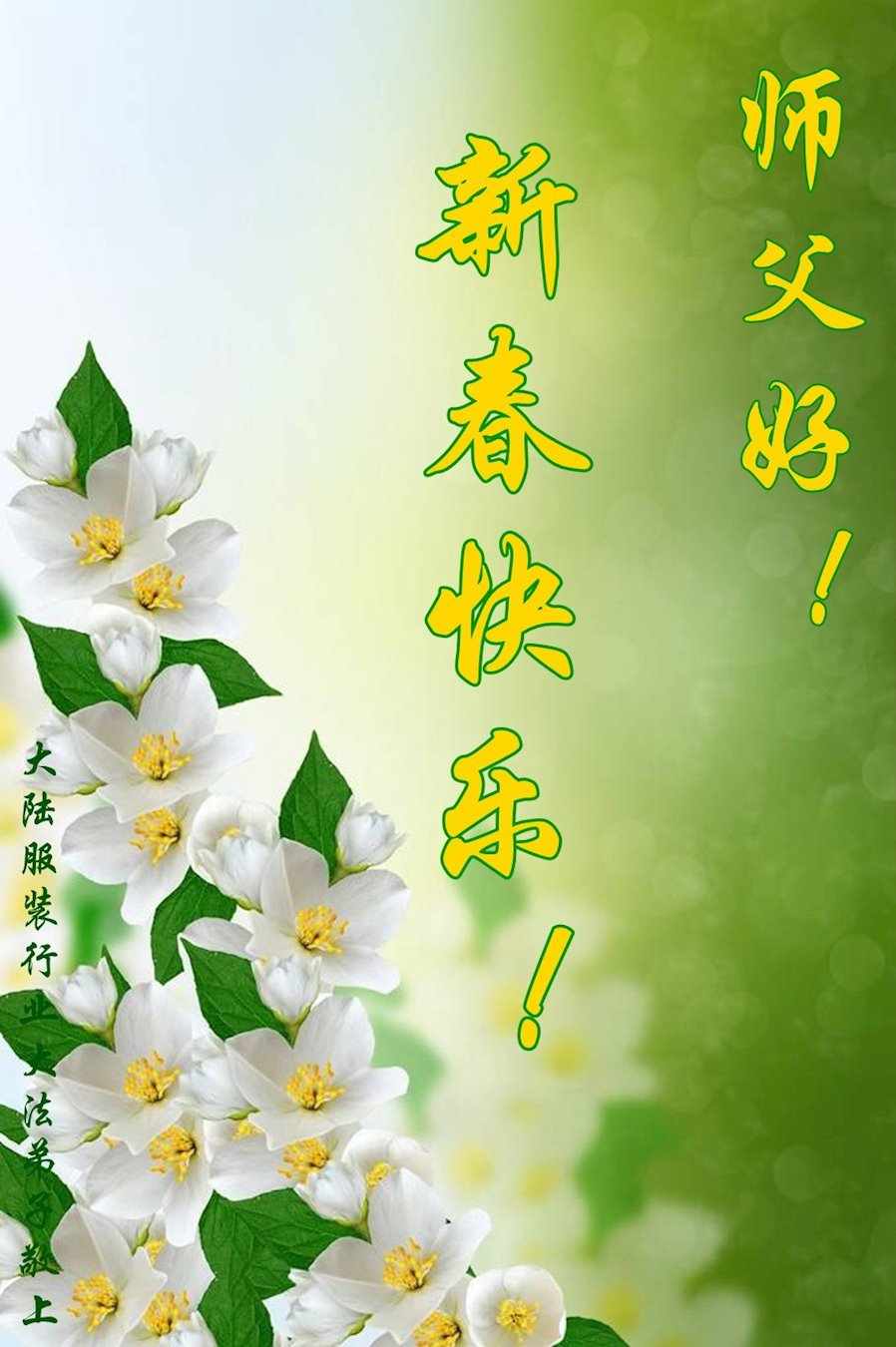 感谢师父不放弃弟子,我一定走好以后的路。 海外二名青年大法弟子恭祝师父过年好!