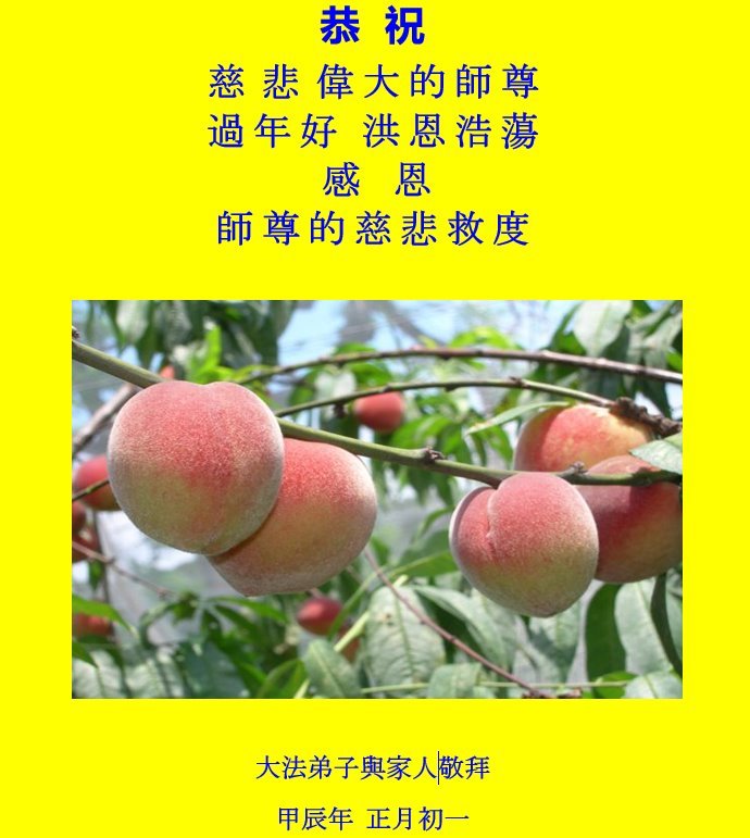 感恩师父的慈悲救度!弟子们一定配合整体做好资料多救人,兑现下世大愿! 大陆西北一资料点大法弟子敬上 大法小弟子恭祝师尊新年快乐!