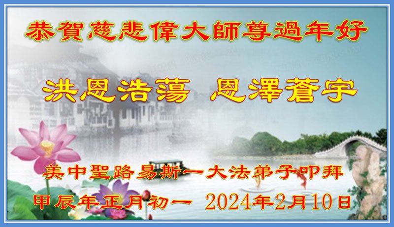 美中圣路易斯全体大法弟子恭祝慈悲伟大师尊过年好!