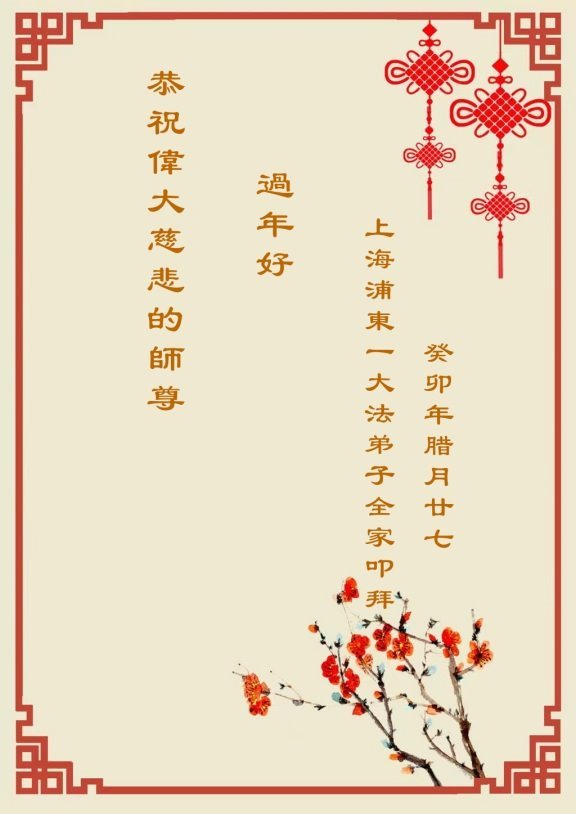 上海浦东一大法弟子全家恭祝师尊新年好! 上海浦东一大法弟子全家九人恭祝师尊新年好! 上海浦东一讲真相小组大法弟子恭祝师尊新年好! 上海浦东一大法弟子全家恭祝师尊新年好!