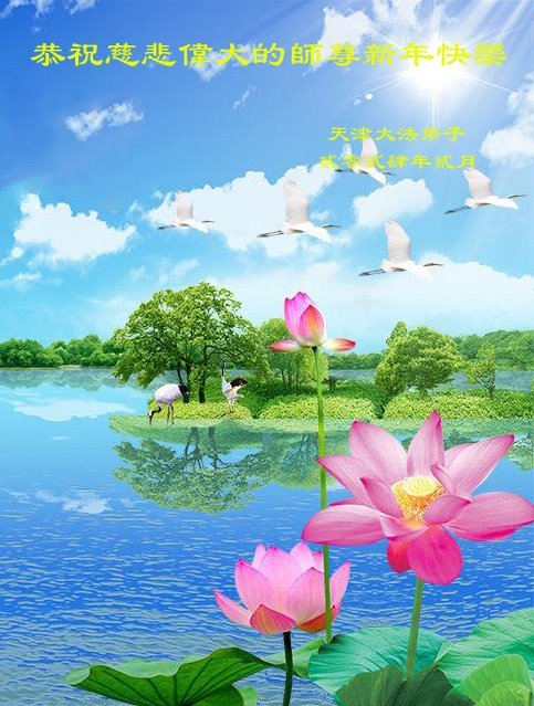恭祝慈悲伟大的师父过年好!新年快乐!谢谢师父的慈悲救度。 天津市和平区、河东区、东丽区大法弟子和家属恭祝伟大慈悲的师尊新年好!