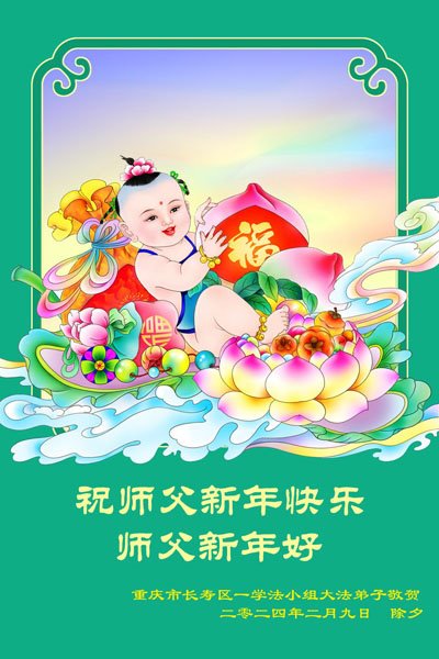 值此新年之际,弟子携家人叩拜师尊,恭祝慈悲伟大的师尊新年快乐!感恩师尊的慈悲救度和看护,弟子唯有精進以报师恩。 重庆长寿区一学法小组大法弟子恭祝师尊新年快乐!