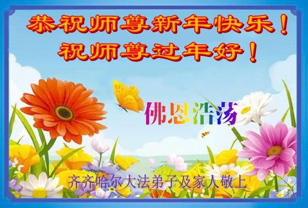 在新的一年,弟子要继续走师父安排的路,助师正法,做好三件事,在修炼中去各种执着心,努力精進,不断提高,圆满跟师父回家。 齐齐哈尔市在外打工的大法弟子 黑龙江省齐齐哈尔市昂昂溪区全体大法弟子恭祝慈悲伟大的师尊过年好!