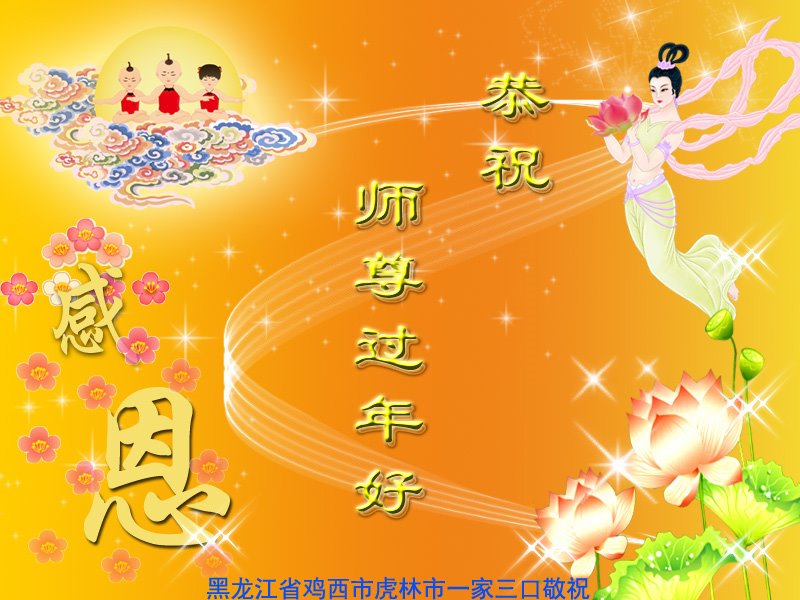 师尊您辛苦了!感激师尊救度之恩!祝师尊新年快乐!跪拜! 合十 二零二四年二月四日 黑龙江省佳木斯市汤原县一大法弟子恭祝师父过年好!