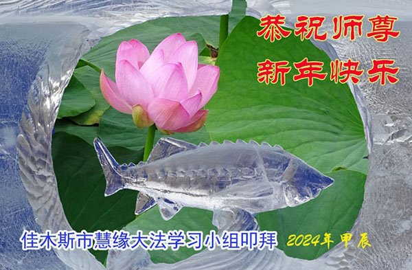 佳⽊斯市一学法小组大法弟子恭祝师尊新年快乐!