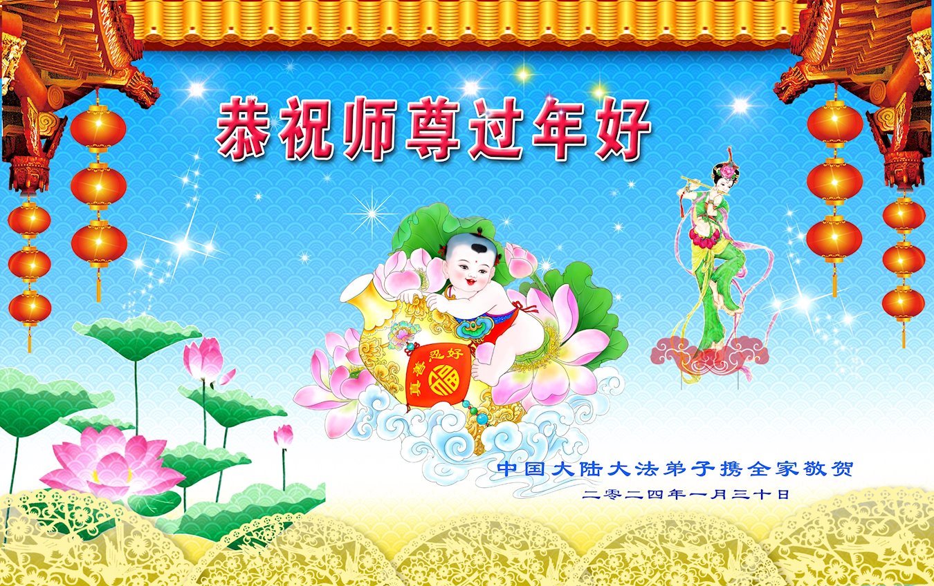 感谢慈悲伟大的师尊普度! 大陆大法弟子敬上 二零二四年二月九日 除夕 大陆大法弟子祝愿师父过年好!