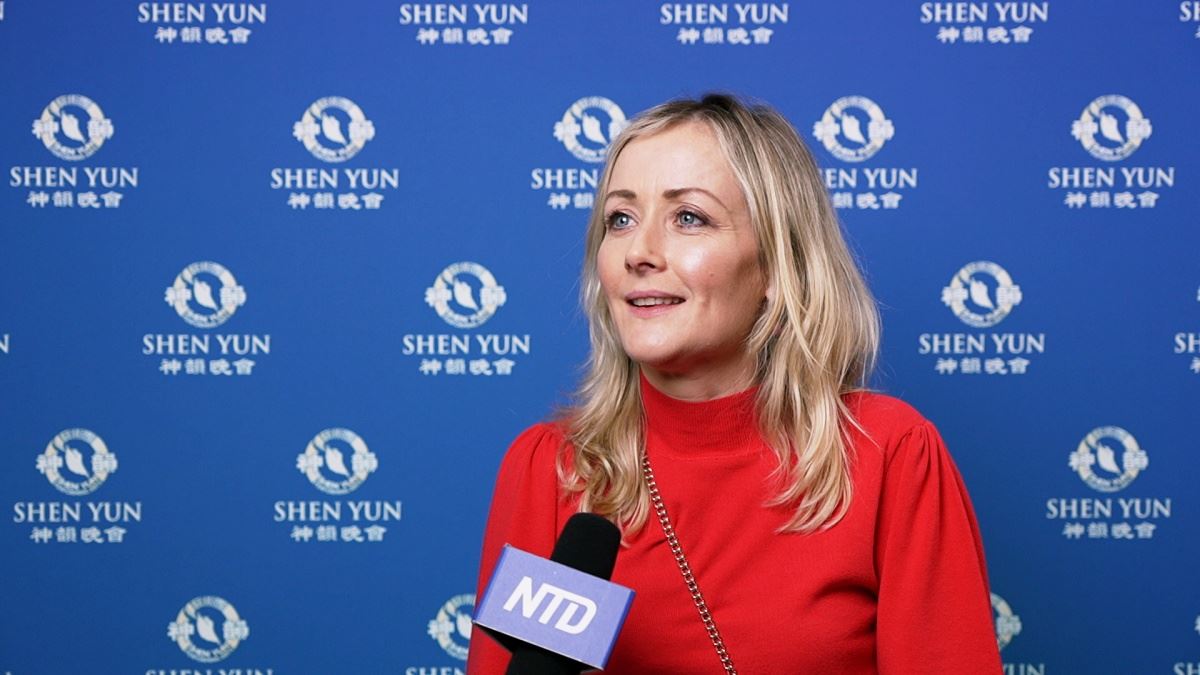 龙年初一,美国神韵新纪元艺术团在英国利物浦帝国剧院上演了二场演出,演出票在开演前几周就已经一票难求。精益创业认证导师玛蒂娜·高斯(Martina Goss)专程从爱尔兰慕名赶来观看神韵演出,她赞演出疗愈人心,带给她宁静和喜悦。 !唐!人:电视台)'> 图5:玛蒂娜·高斯(Martina Goss)说:“演出非常美丽,令人振奋,鼓舞人心。”(新!唐!人:电视台) |
