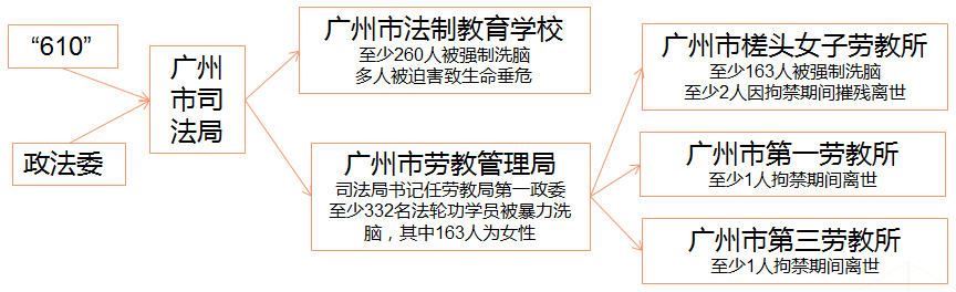 | 【明慧网二零二四年二月二十一日】(明慧网通讯员广东报道)二零零九年十月至二零一六年十二月,吴善积任广州市司法局邪*党-党委书记、局长。吴善积延续前局长卢铁峰(已遭恶报死亡)的迫害政策,在劳教所和洗脑班残酷迫害法轮功学员,至少七十五名法轮功学员被广州市洗脑班迫害。因带领广州市司法局六人公款出国旅游,二零一八年四月,吴善积曾受严重警告处分。 吴善积,男,一九五七年七月出生,二零零九年十月至二零一六年十二月,任广州市司法局邪*党-党委书记、局长。 作为司法行政机关,广州市司法局执行的不是法律,而是党务机构政法委和非法组织“610”的指令。不但在其管理的劳教系统内对被非法关押的法轮功学员暴力洗脑,还非法设立了专职洗脑机构——广州市“法制教育学校”(洗脑班)。二十多年来,被广州市司法局主导的洗脑班迫害的法轮功学员人数至少超过六百人,多人被迫害致死、致残、精神失常。  广州市司法局迫害法轮功学员的组织情况 |