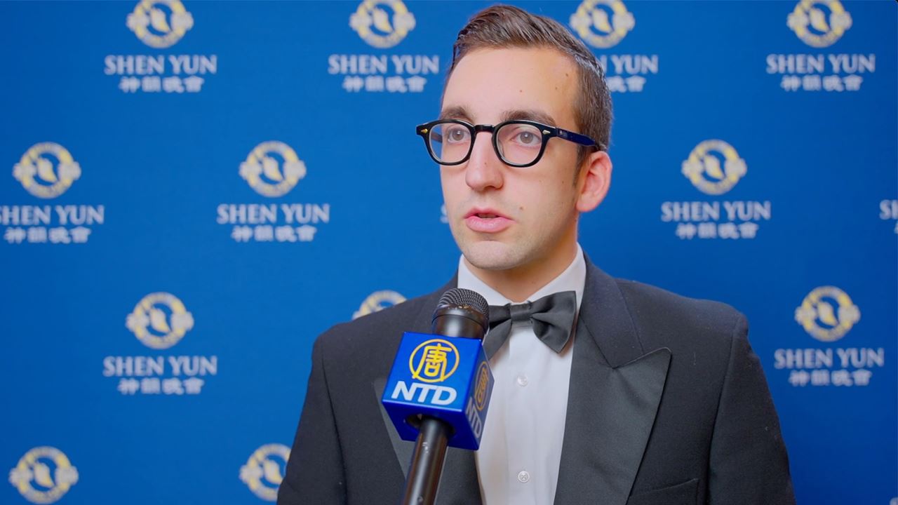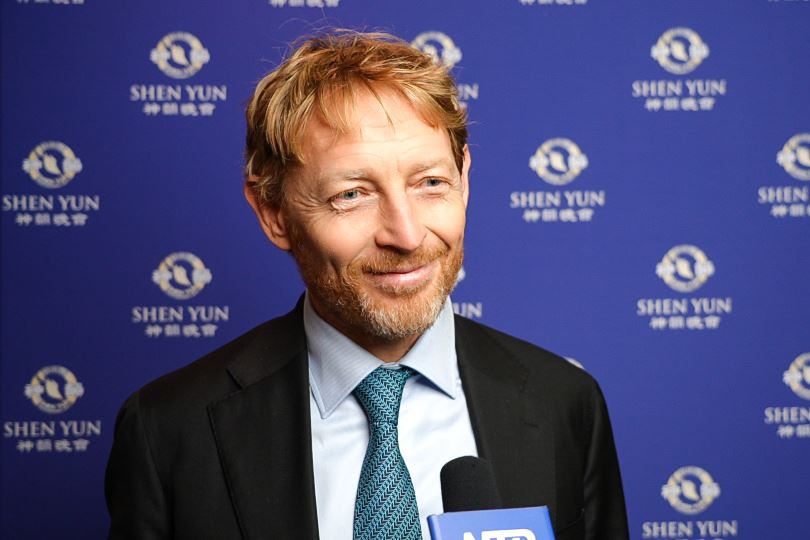 谈到神韵艺术家通过舞蹈和音乐展现传统价值观,Carlo Bergonzi表示:“这些价值观当然在演出中你能感受到很多,还不仅于此,你会感受到很多很多。他们都是非常年轻的艺术家,在兑现一个美丽的使命,将这传递给我们所有人。” “我非常荣幸他们莅临这个小镇,我祝愿他们事业和个人一切顺利,祝愿他们在世界各地的演出圆满成功。”他说:“我在帕尔玛等待与他们再次相见。” 意大利银行行长:能观赏神韵,我真的很幸福 一月二十三日,意大利帕尔玛一家私立银行的分行行长克里斯托弗·达达里奥(Cristopher D’addario)观赏了当天的神韵环球艺术团的演出后表示,演出传递的讯息让他产生共鸣,他感到非常幸福。“演出非常壮观,色彩丰盛,非常壮观,十分美妙”。 !唐!人:电视台)'> 图20:克里斯托弗·达达里奥(Cristopher D’addario)说:“我要感谢艺术家。”(新!唐!人:电视台) |