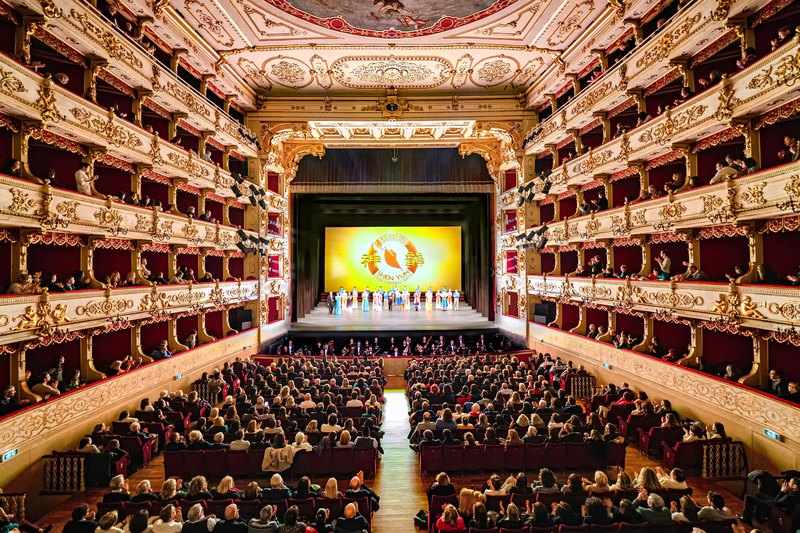 莫斯切拉(Anthony Moschella)在美国国防部负责部队结构的管理整合,多年来他一直想看神韵,“如今终于来了。我们以后肯定会让这(看神韵)成为每年的固定活动。” “我特别喜欢动画(天幕)与舞蹈之间的互动,那真是太壮观了。”他表示,神韵不止是一场华丽的演出,还蕴含深刻的寓意。 “演出传递的讯息很棒。”他说,“讲述了一些非常棒的故事,我有一半亚裔血统,许多故事都是从我母亲那里传承下来的”,神韵带给他一种亲切感。 神韵以复兴中国五千年文化为宗旨,莫斯切拉认为神韵已经做到了这一点,“神韵成功地将完成了将(中国传统)文化带给美国大众的使命,并且讲述了一些非常棒的故事。” 莫斯切拉也从神韵演出中感受到神性内涵,“中国人的灵性层面真的非常吸引人,这让我对人的起源概念有了更深的理解。” 意大利神韵演出票房提前售罄,主流:观看演出是美好的体验 .纪.元;)'> 图18:二零二四年一月二十三日至二十五日,美国神韵环球艺术团在意大利以盛产火腿和奶酪出名的古城——帕尔玛的王室歌剧院(Teatro Regio)上演了四场演出,去年圣诞节前就已告罄。图为二十五日晚演出的谢幕照。(大.纪.元;) |