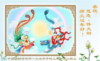 师父过年好!感恩师尊,弟子用任何人类的语言都无法表达对师尊的感恩,唯有精進实修,做好三件事以报师恩。谢谢师尊! 吉林省吉林市三姐妹大法弟子恭祝师尊新年快乐!