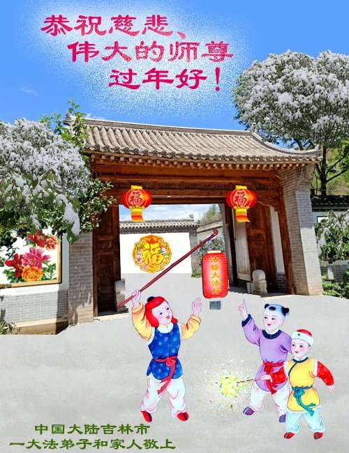 慈悲、伟大的师尊您好!中国大年到,岁岁贺新年,喜庆将至恭祝我们伟大的师父过年好!作为您弟子的子女和家人无限的感恩、无限的幸福,师父的洪恩永记!谢谢您师父! 中国大陆吉林市一大法弟子的儿女和家人敬上 二零二四年一月九日 吉林市一大法弟子和家人恭祝师父过年好!