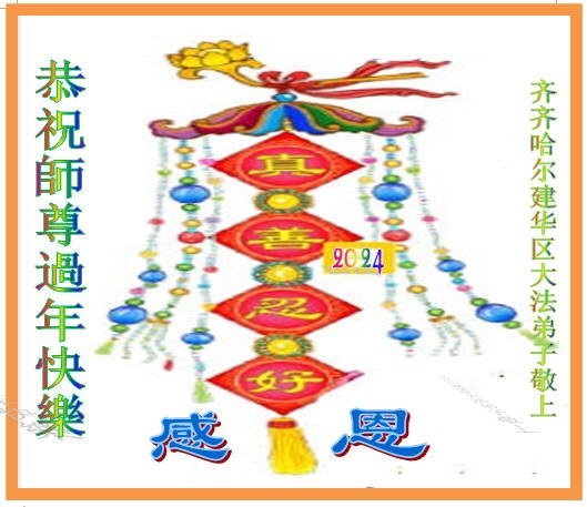 【明慧网二零二四年二月七日】 黑龙江省齐齐哈尔市建华区大法弟子恭祝慈悲伟大的师尊过年好!