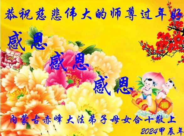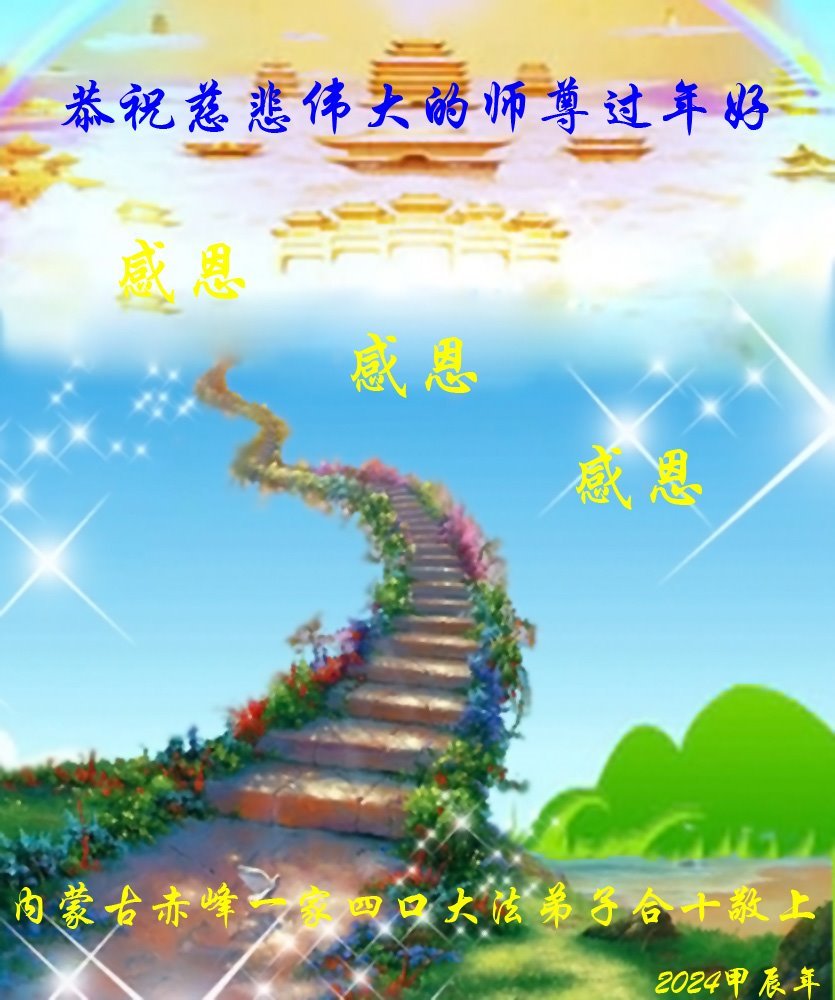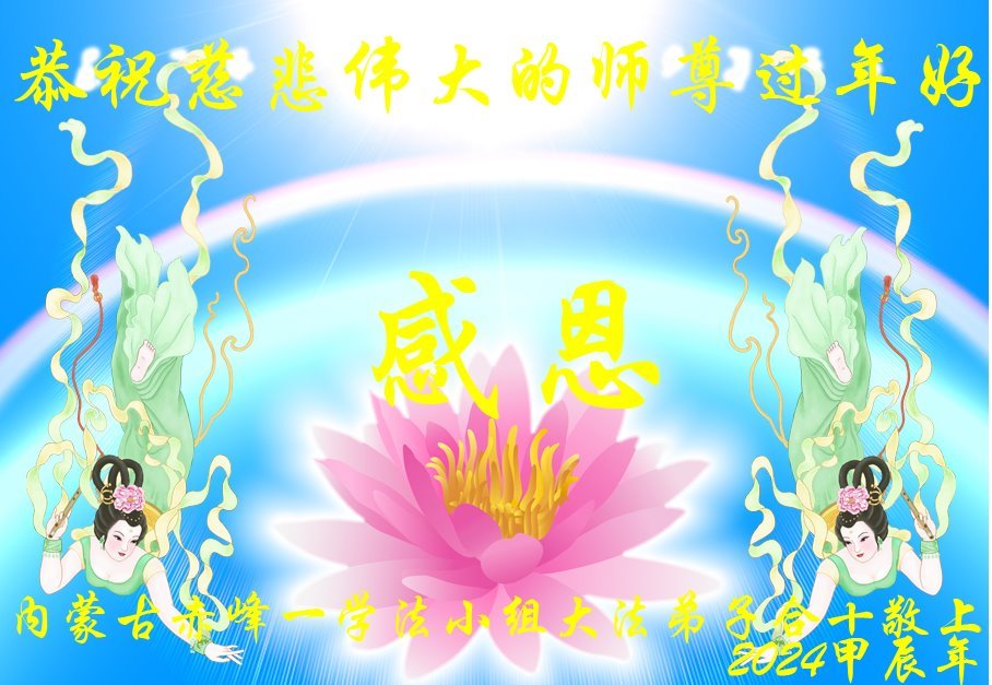 【明慧网二零二四年二月七日】 内蒙古赤峰市一学法小组大法弟子恭祝慈悲伟大的师尊过年好!