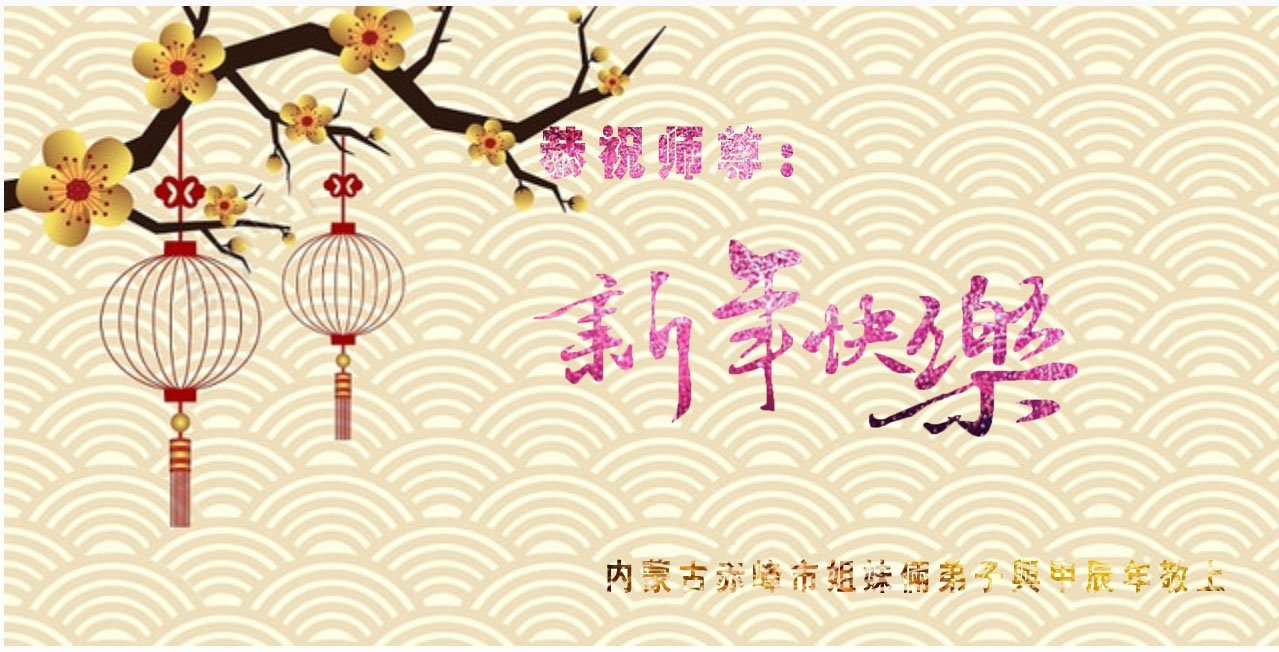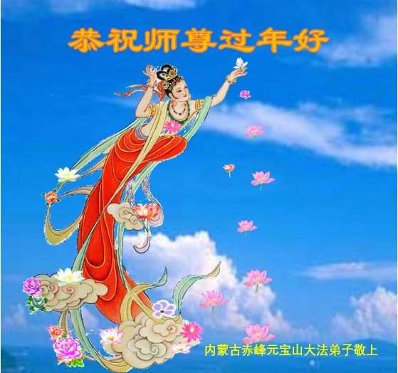 祝慈悲伟大的师父新年快乐!师尊您辛苦了!弟子们一定紧跟正法進程,兑现誓约,谢谢师尊! 内蒙古赤峰翁牛特旗某学法组 内蒙古一大法弟子恭祝师尊新年快乐!感恩师尊慈悲救度!