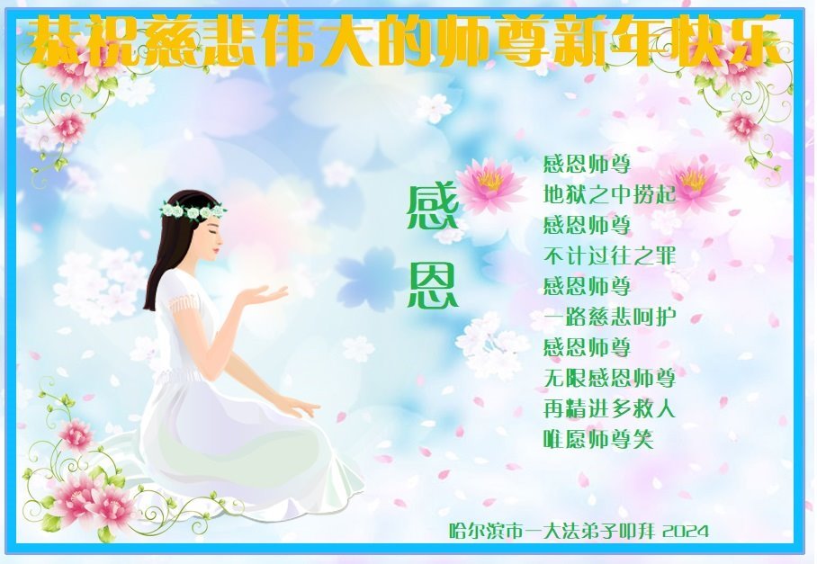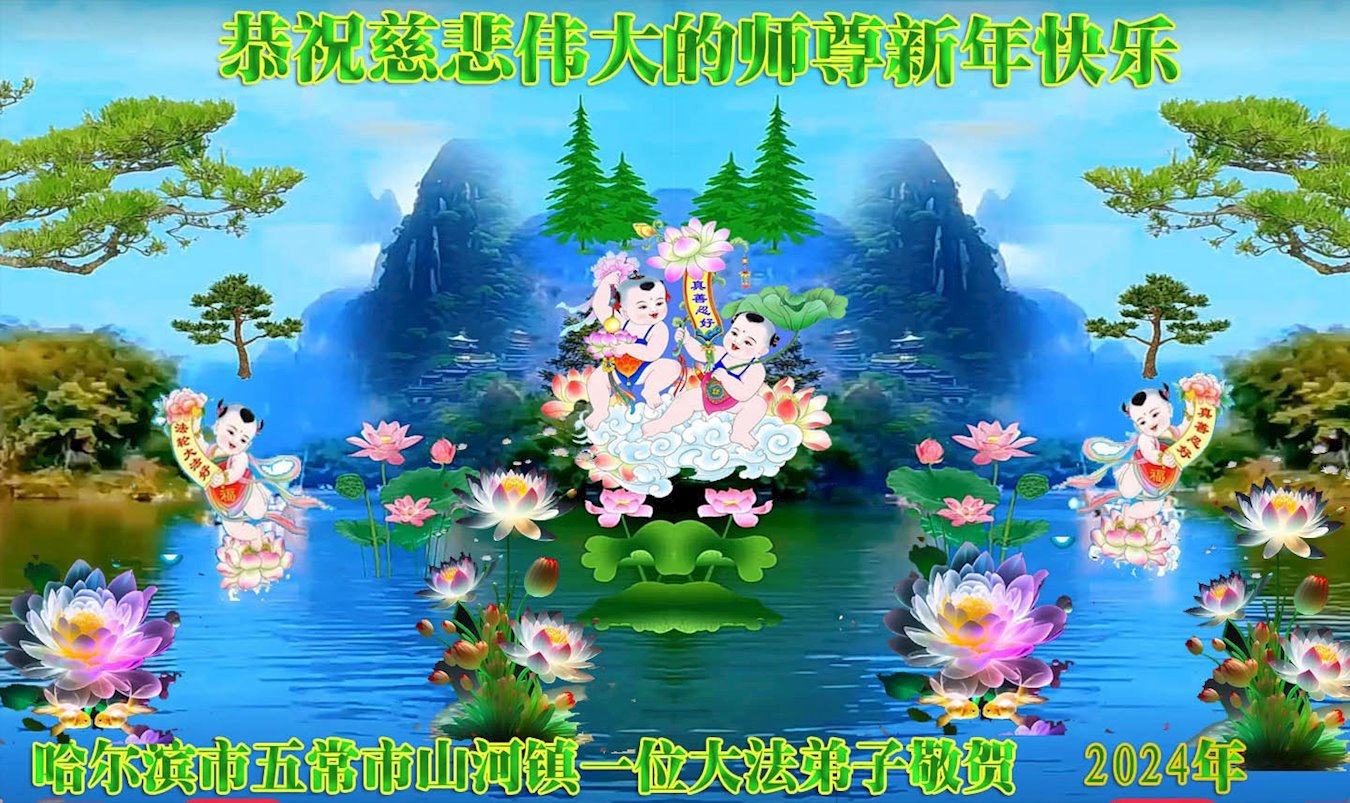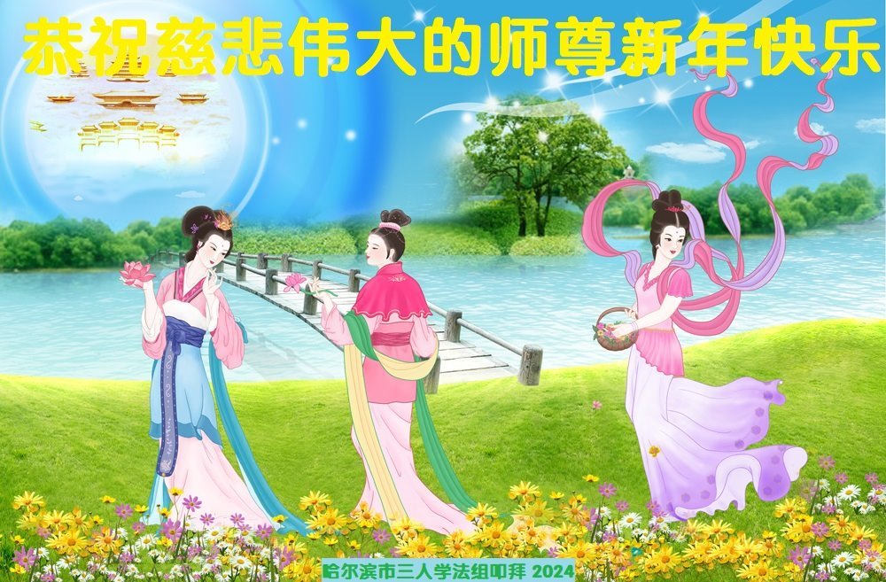 【明慧网二零二四年二月七日】 黑龙江省哈尔滨市三人学法组大法弟子恭祝慈悲伟大的师尊新年快乐!