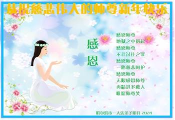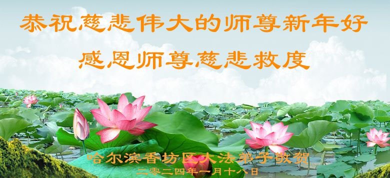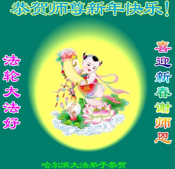 哈尔滨大法弟子恭祝慈悲伟大的师尊新年快乐!新年好! 忆师恩永远难忘!佛恩浩荡! 法轮大法好!真善忍好! 黑龙江哈尔滨市大法弟子恭祝慈悲伟大的师尊新年快乐!
