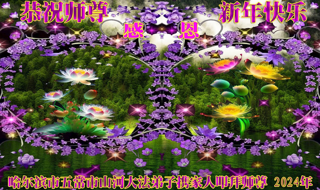 弟子恭祝师尊新年快乐!弟子感恩师尊的慈悲救度! 师尊辛苦了,谢谢师尊! 黑龙江哈尔滨市五常市山河镇一位大法弟子携家人恭祝师尊新年快乐!