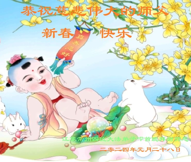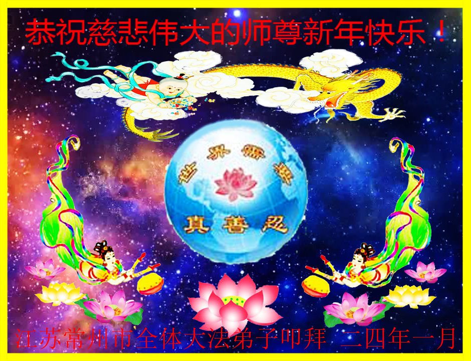 弟子们会继续做好三件事,不怕苦累,多学法,学好法,多救人,圆满随师尊回家。 江苏省常州市全体大法弟子叩拜恭祝慈悲伟大的师尊新年快乐!