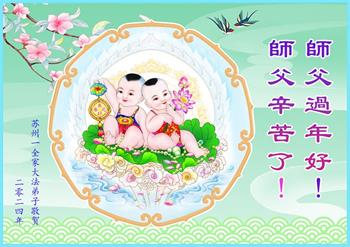 感谢恩师慈悲苦度!在新的一年里,弟子一定听您的话学好法,修好自己,不负使命兑现誓约。 江苏省苏州一全家大法弟子恭祝师父过年好!