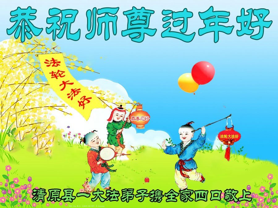 辽宁省抚顺市清原县一大法弟子携全家四口人恭祝师尊过年好!