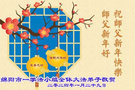四川绵阳市一学法组全体大法弟子恭祝师父新年快乐!