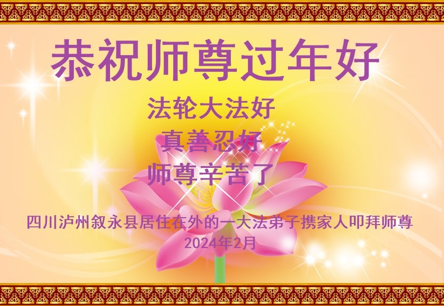 四川省泸州叙永县居住在外的一大法弟子携家人恭祝师尊过年好!