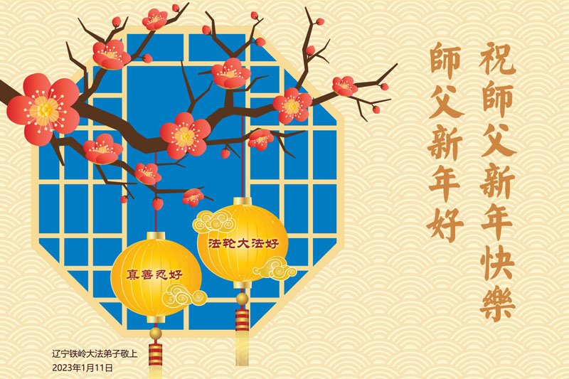 感谢师尊的慈悲救度!我们几个大法弟子一定听师尊的话,多学法,多救人,去执着,放下人心,让师尊放心。 辽宁省阜新市一大法弟子全家恭祝师尊新年快乐!