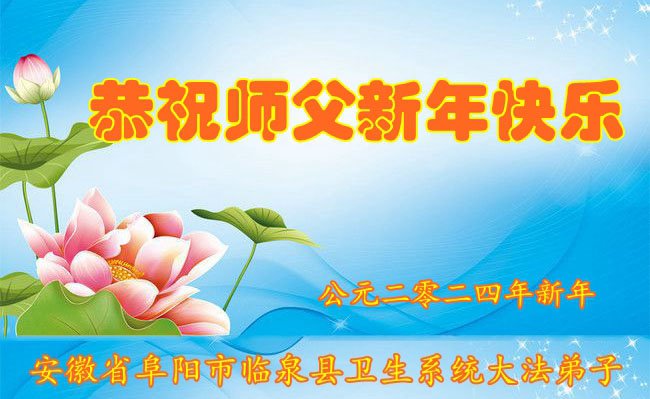 恭祝师尊过年好!感谢师尊慈悲救度!弟子们要做好三件事,实修、真修自己,遇事向内找。我们要在法正人间的过渡阶段,学好法,转变观念,提高境界,救度更多的众生。 中国大陆全体水利系统大法弟子敬上 安徽省阜阳市临泉县卫生系统大法弟子恭祝师父新年快乐!