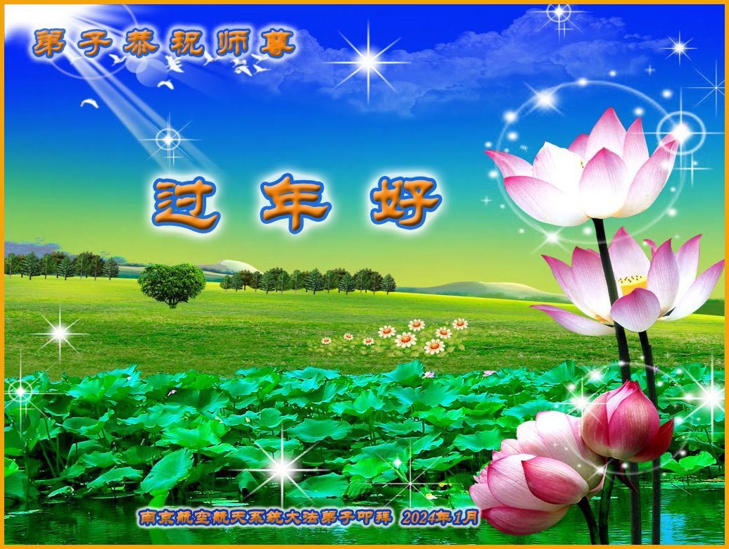 师父您好!师父辛苦了!谢谢师父的慈悲救度!今生能成为师父的弟子,是生命最大的荣耀。弟子用尽人类的语言也无法表达对师父的无限感恩。 在今后不多的正法时间里,弟子一定修好自己,多学法、学好法,更加精進,完成使命,跟师父回家。师父,谢谢您! 江苏省南京航空航天系统大法弟子给师父叩头拜年!恭祝师尊过年好!